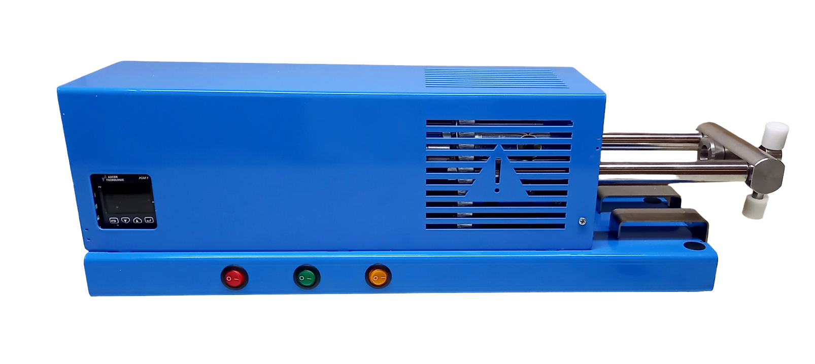 Пресс состоит из трех основных частей: пневматического цилиндра, нагревателя и кюветоприемника.